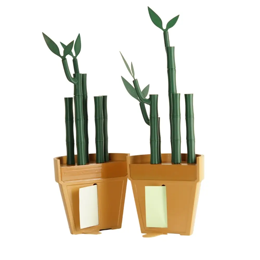 Bambu Kitap Tutucu, yalnızca bir kitap destekleyici değil; aynı zamanda kalemlik, not tutucu, post-it dispenseri, ayraç bölmesi ve refil uyumlu kalem standı olarak çok yönlü işlevler sunan akıllı bir masa aksesuarıdır. Doğal bambudan ilham alınarak tasarlanan bu ürün, Lego çiçek görünümünde modüler bir form sunar. Her segmenti vidalı sistemle bağlanır, böylece kullanıcıya göre kişiselleştirilebilir.